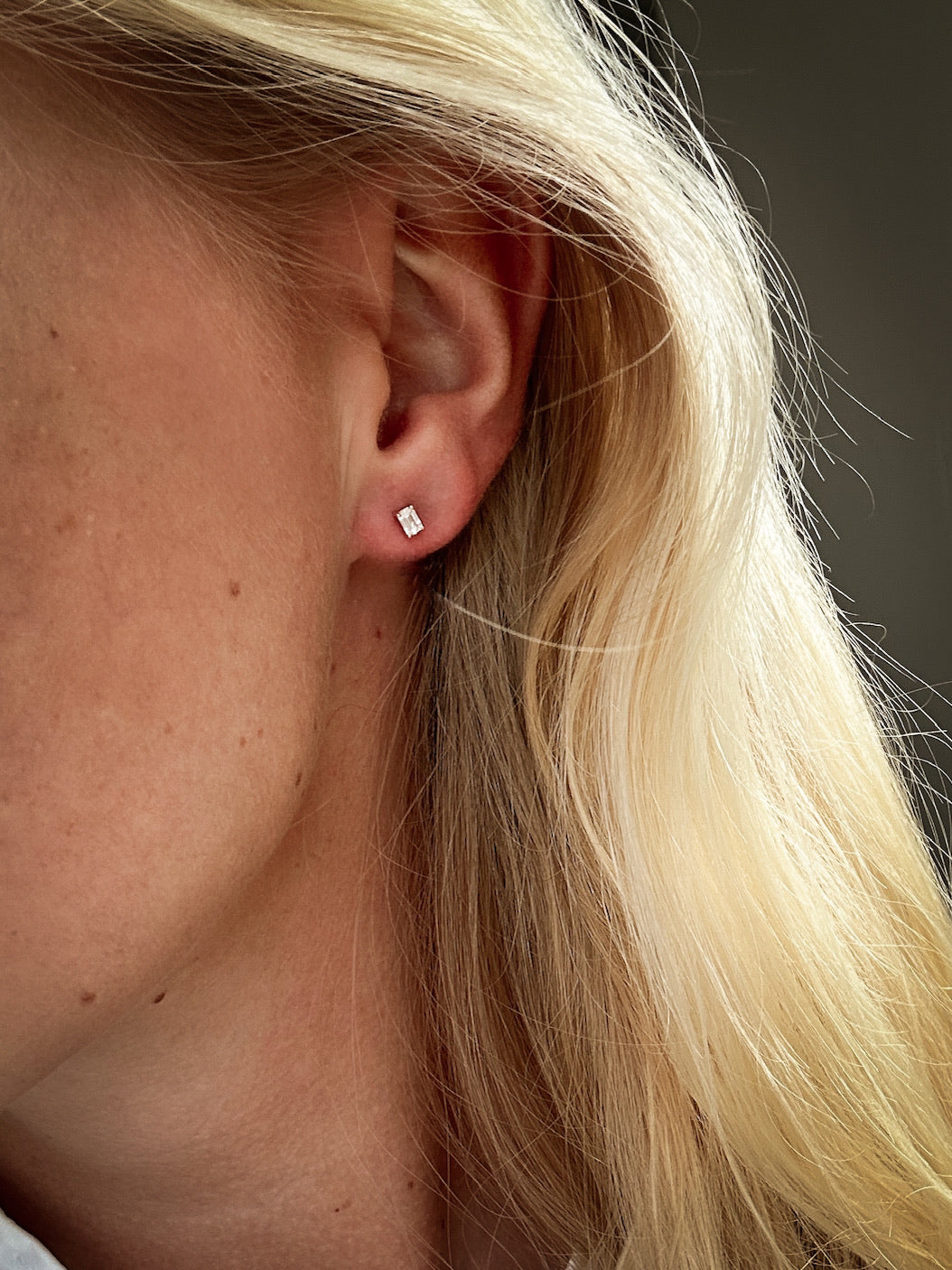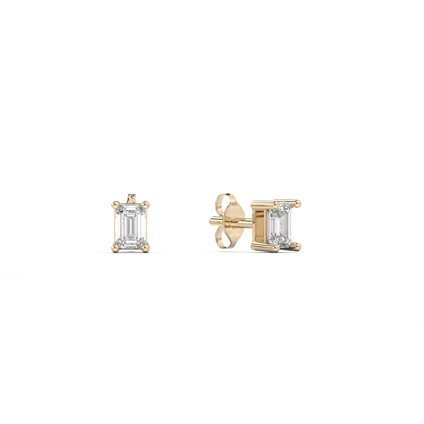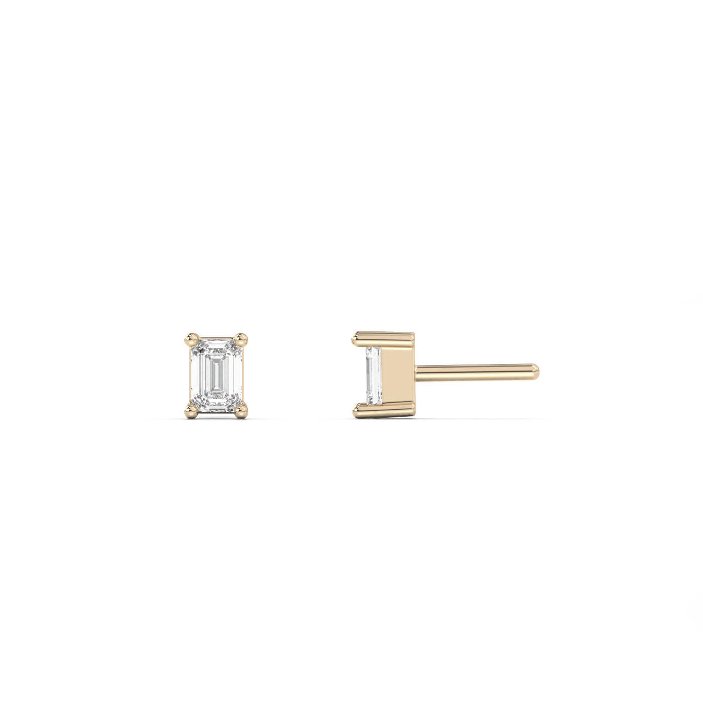 Small emerald cut diamond stud 14K Gold (0.10 ct.) | Single